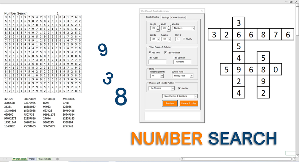 You'll get an Excel File with a Word Search Generator Pro, including Word Search, Number Search, Emoji Search, Trivia Puzzle Inside !